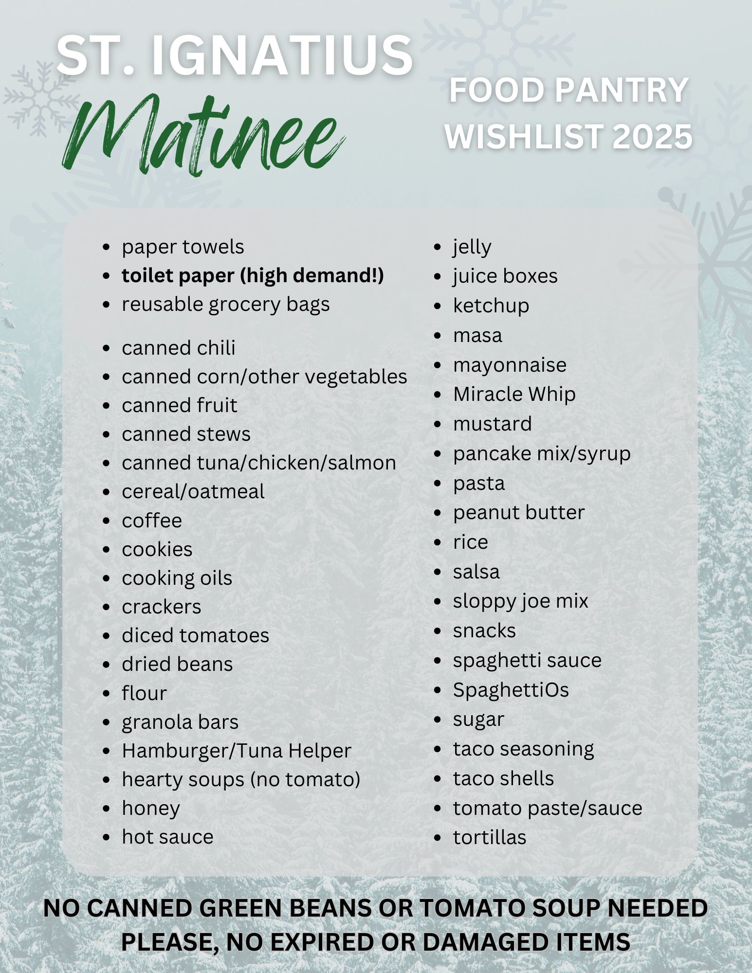 Suggested donation: $10 + a non-perishable food item (see list of suggested items).